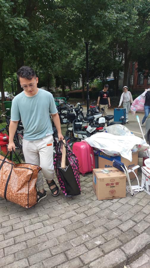 林学研究生第一党支部的胡磊同学说:“在上午搬完自己宿舍后,我和师兄们紧接着就去帮助一位女同学搬宿舍。她的宿舍在六楼,东西比较多,在大太阳底下,我们来来回回搬了五六趟。最后搬完确实累得满头大汗,腿都直打颤,但是看到被帮助者搬往宿舍后露出的开心笑容,以及对我们发出的一声声真挚感谢,身体上的疲惫被心中的高兴一冲而散。帮助他人,快乐自己!”
