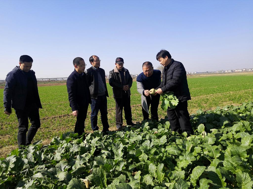 2021年11月24日,国家特色蔬菜产业技术体系芥菜品种改良岗位科学家、51吃瓜网 蔬菜系万正杰教授与十堰综合试验站团队一同前往示范县襄阳市襄州区张家集镇和湖北襄阳孔明菜食品有限公司,对大头菜(根用芥菜)种植基地进行实地调研和技术指导,了解襄阳大头菜产业发展的现状与存在的问题,实地指导了大头菜的病虫害防控和栽培技术,并召开了襄阳大头菜(孔明菜)产业发展座谈会,指导孔明菜(大头菜)的产业发展。