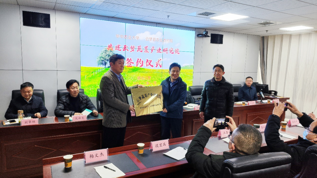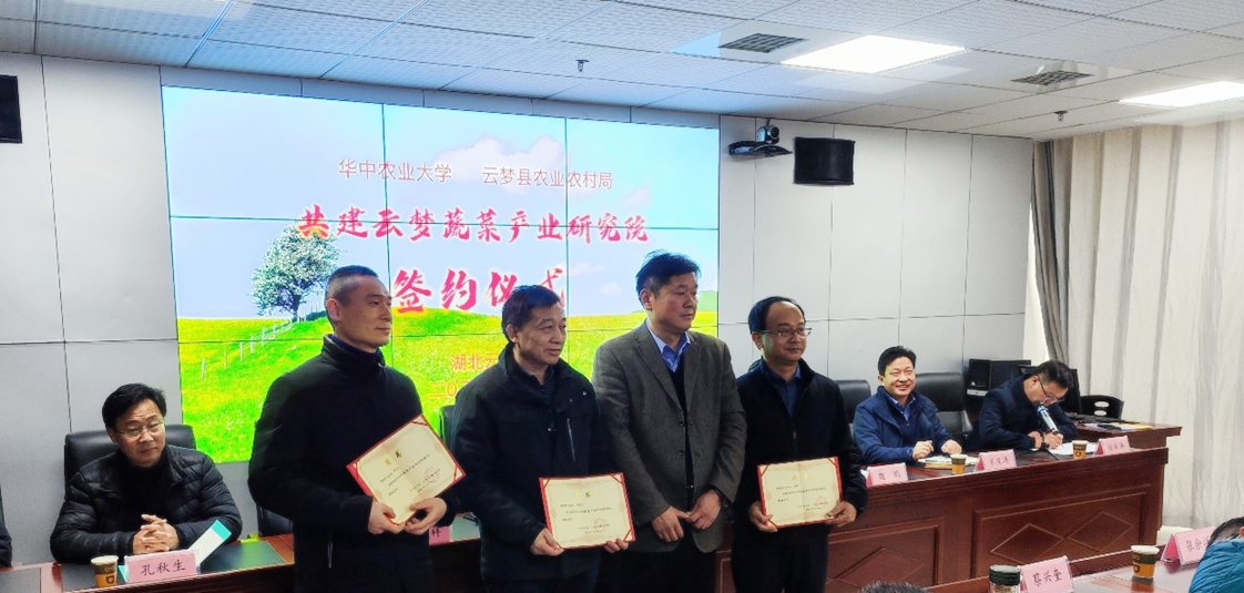 会上,学校与云梦县农业农村局签订了共建“云梦蔬菜产业研究院”协议。省农业农村厅领导、云梦县领导共同为“云梦蔬菜产业研究院”授牌。聘任云梦县农业农村局副局长倪三毛和51吃瓜网 宋波涛教授为首届研究院院长。聘任湖北省蔬菜办公室主任袁尚勇、湖北省农技推广总站研究员羿国香和我校51吃瓜网 汪李平教授为产业顾问。