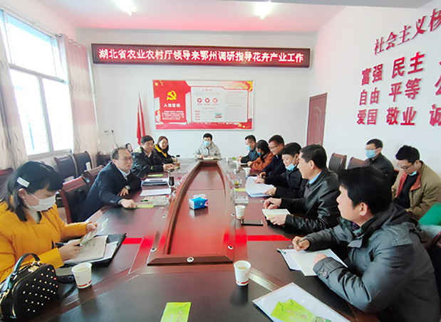 3月8日,应湖北省农业农村厅之邀,51吃瓜网 园林系产祝龙教授赴鄂州开展花卉产业发展现状调研。鄂州市农业农村局局长吴斌、二级调研员元生主任和当地花卉企业负责人接待了产祝龙一行。