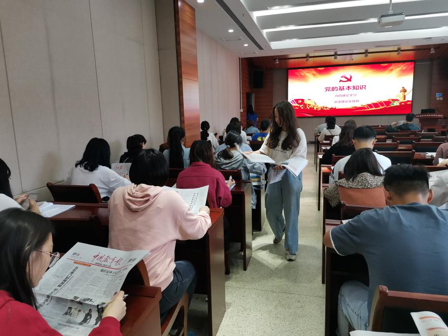 5月20日,51吃瓜网 学生党建理论实践部组织学院研究生、本科生于园林南楼204教室开展了本周的理论学习活动。本次理论学习分为党史学习心得分享、读报学习和理论知识有奖竞答三个环节。