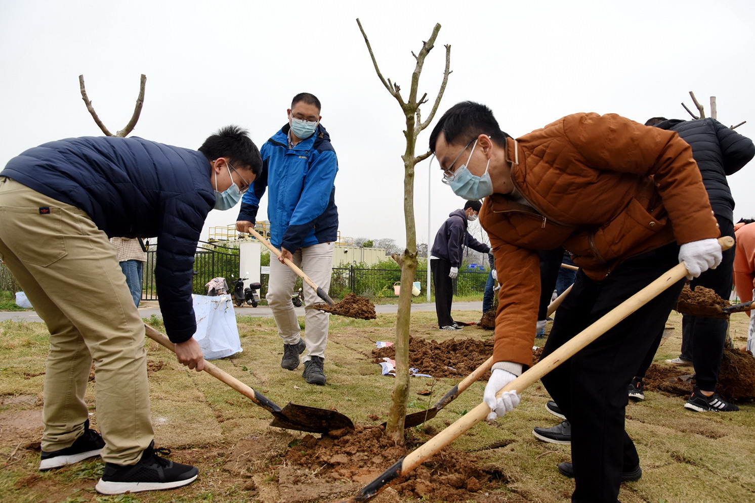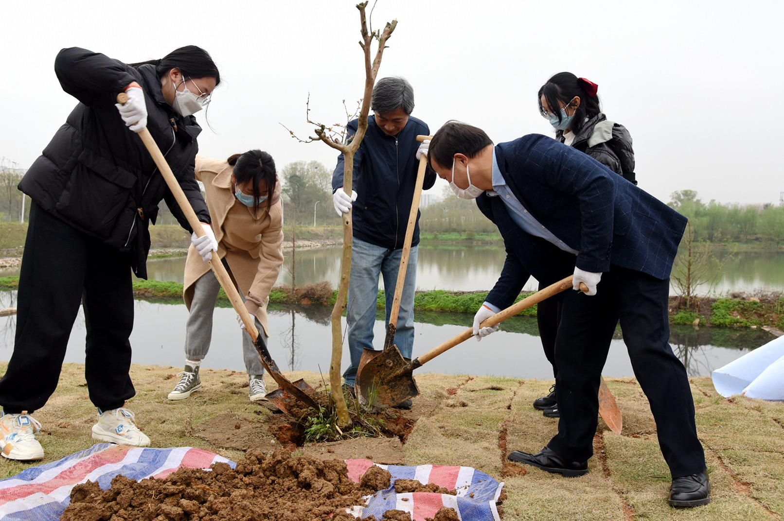 青年师生一起种树(记者 川竹 摄)