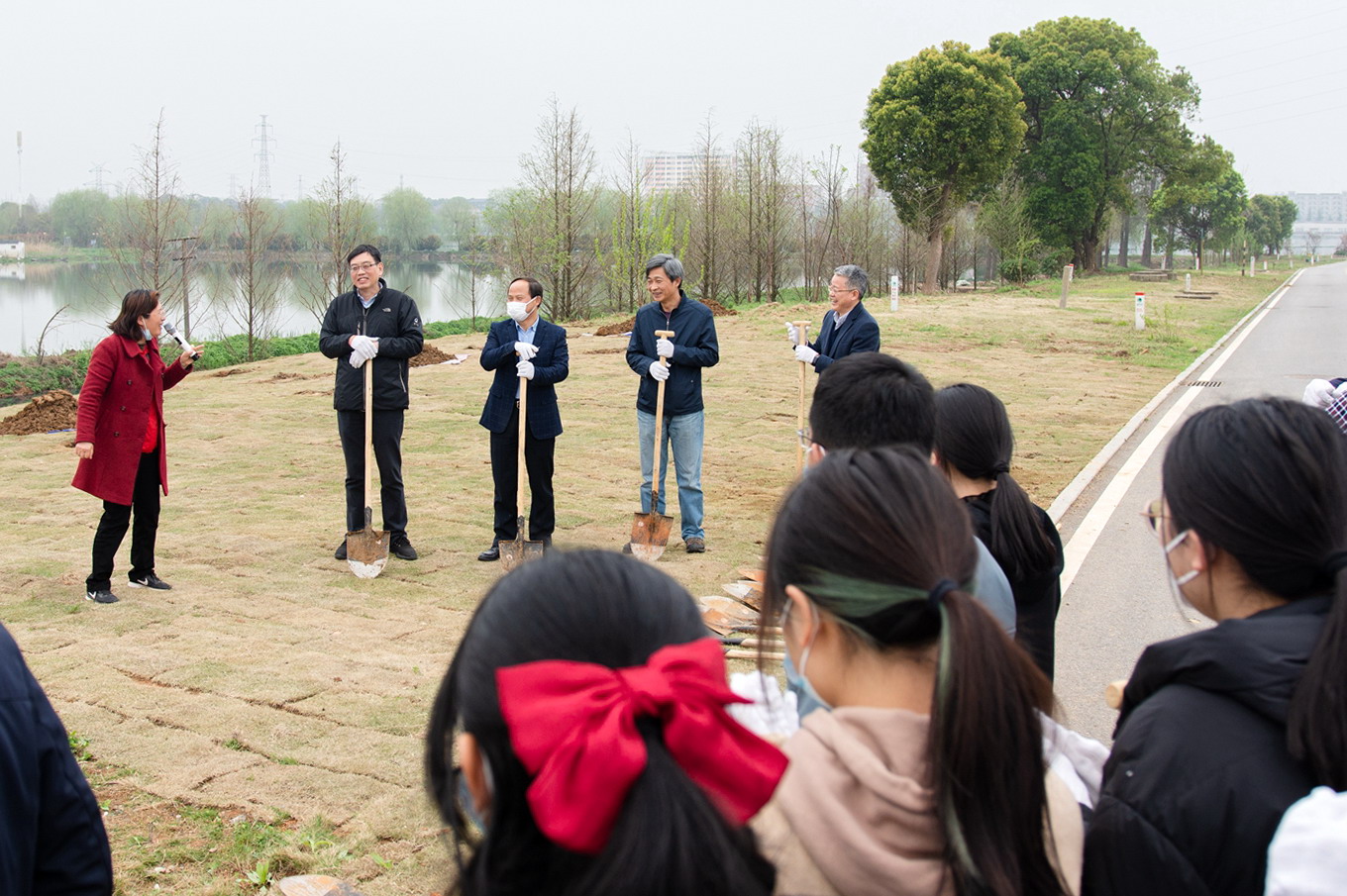 南湖新闻网讯(记者 川竹)春风拂绿,万象盎然。3月18日,我校在香樟路与学府路交叉口野芷湖绿道旁开展植树活动。校领导高翅、廖济忠、王建鸿、郭刚奇,校绿化工作委员会成员,青年教师代表和学生代表等40余人参加了植树活动。