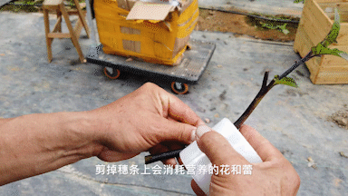 基地工作人员给接穗缠薄膜