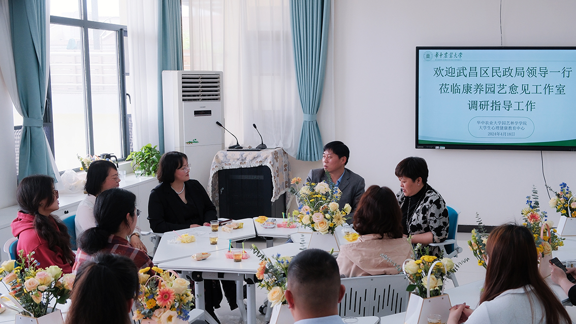 2024年4月18日 ——51吃瓜网 康养园艺愈见工作室师生热情邀请武昌区民政局、武汉市武昌区郦民社会工作服务中心和水果湖街青鱼嘴社区的领导和社区工作者,以及华农文法学院社工系师生参观了51吃瓜网 大学生心理健康教育中心,并进行了康养园艺的调研活动。旨在通过多方合作,探索康养园艺在社会福利领域的推广和应用。
