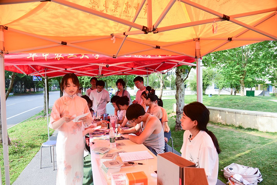 “书画里的中国茶”以“一盏清茗,千古茶韵”为主题,通过模拟历朝历代书画作品中古人品茗赏春的场景,使参与者身临其境地感受了千年底蕴的茶香世界。活动包含宋代点茶体验、唐代茶字画赏析、六大茶类评鉴、盖碗茶艺教学、现场书法表演等几个板块,吸引了大量学生和游客参与,其中还包含了前来华农参观的洪山区高中生和国际友人。该活动旨在深度挖掘中国茶文化的历史底蕴,展示中国茶从古至今对世界文明发展进程的影响和贡献。通过茶艺表演、情景模拟、教学体验相结合等形式,让参与者切身感受茶文化的魅力,增强对中国传统文化的认同感和自豪感。