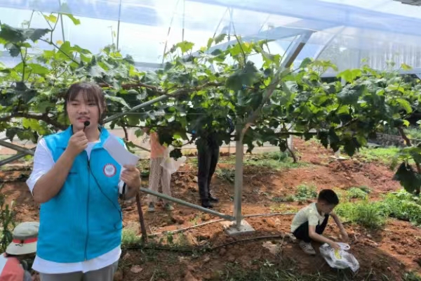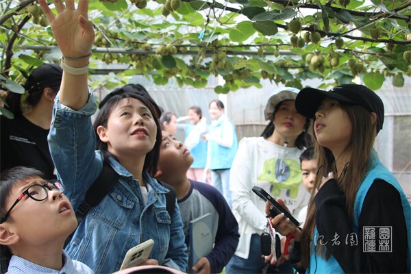 上午9时,20个家庭被分为两组,由华艺树人创业团队的贺长娥、余芷寒两位讲解员分别带队进行果树标本园的参观讲解。