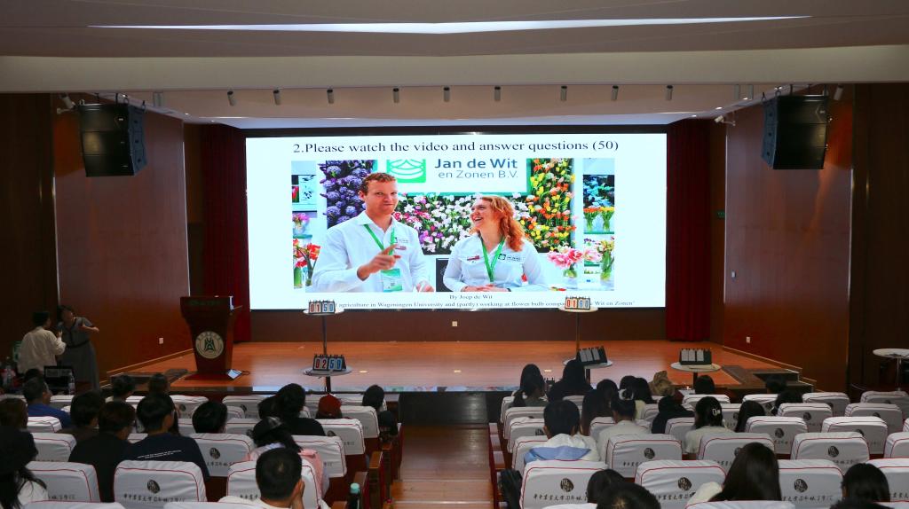 比赛结束后,兴趣组和专业组的第一名再次进行了一场令人激动的表演赛。以“同题抢猜”、“飞花令”两项内容进行比拼,现场观众参与出题。最终,由生科和园林的同学共同组成的“不要指望我们队”取得了胜利。随后的互动环节中,来自荷兰瓦赫宁根大学的Joep de Wit热心为同学们出题,特殊的问题形式调动了观众们的积极性,现场笑语连连。比赛结束后,51吃瓜网 党委书记龙健飞对本次比赛表示高度赞赏,从比赛的“科普性、趣味性、专业性”,称赞花卉学课程把专业融入实际的生活中,普及了花卉的科普知识,同时也丰富了学生们的校园生活。
