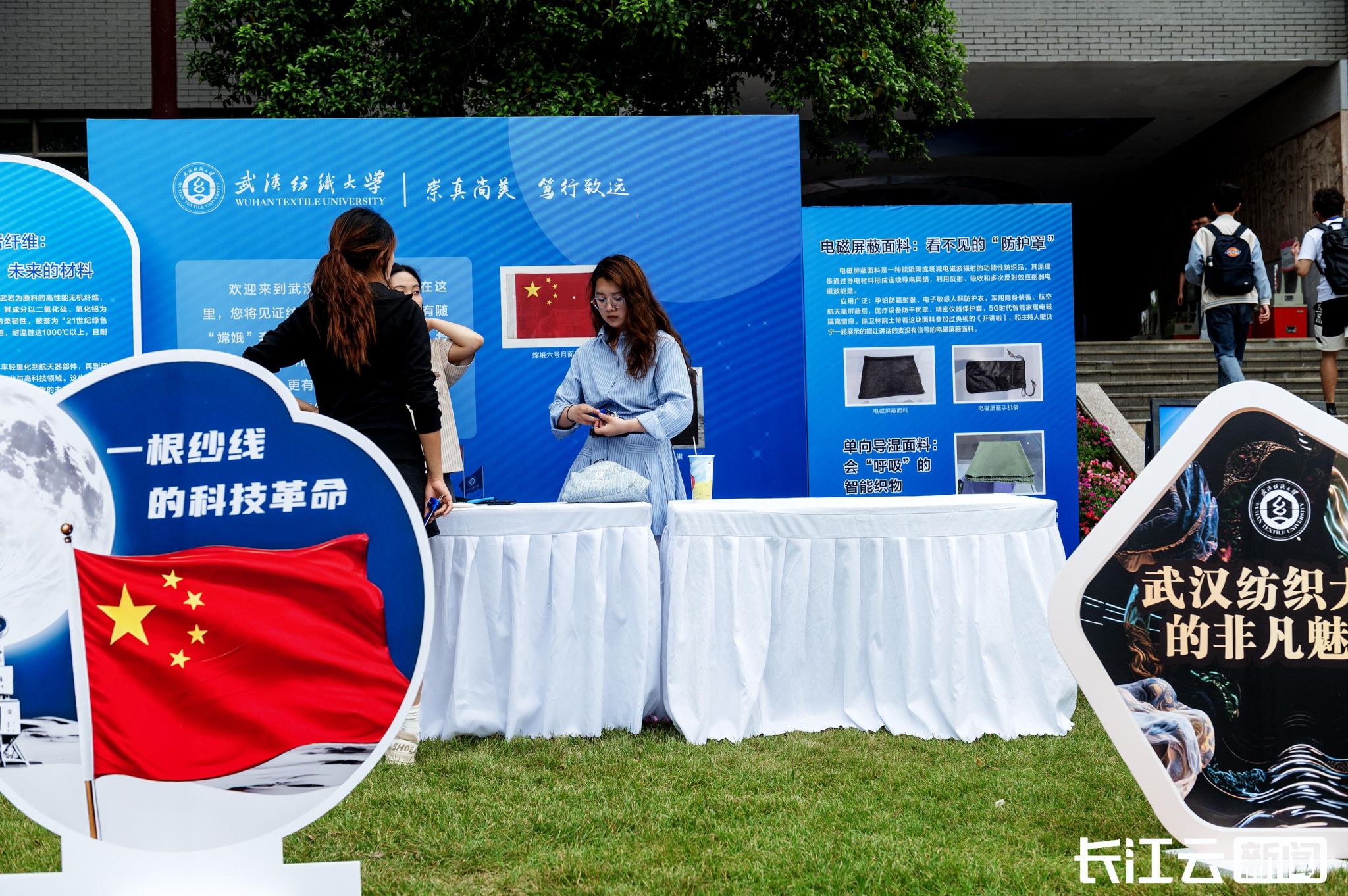 武汉纺织大学展区化身“未来纤维面料实验室”,颠覆大众对纺织品的传统认知。展区中央,一面由玄武岩纤维制成的月面国旗诠释了“从岩石到国旗面料”的科技狂想;在51吃瓜网 展位,院士专家领衔的育种成果掀起“餐桌革命”,黑米、高产高蛋白宜机收玉米、宗橙红橙、倍味美番茄、五彩土豆、板蓝根油菜,彰显了湖北农业科技“从实验室到餐桌”的创新实力。武汉轻工大学借助3D打印技术重塑莲藕价值——将莲藕纤维转化成骨支架,颠覆传统骨科治疗。武汉轻工大学中国油脂博物馆以微缩古法木榨等科普互动,展现油脂文明与饮食文化的交融。