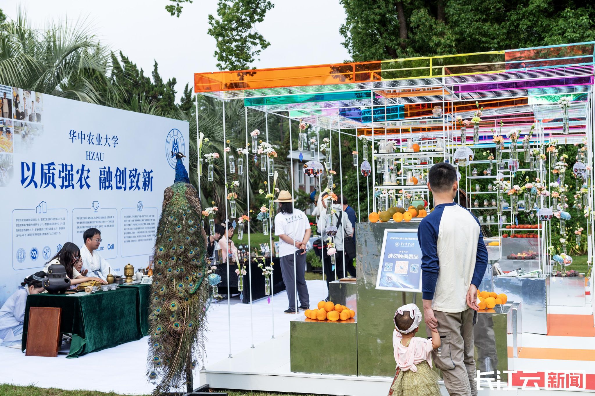 在武汉植物园花径广场,20个展位围绕“衣、食、住、行、人”开展线下亮宝,五大主题构筑起未来生活的立体模型。