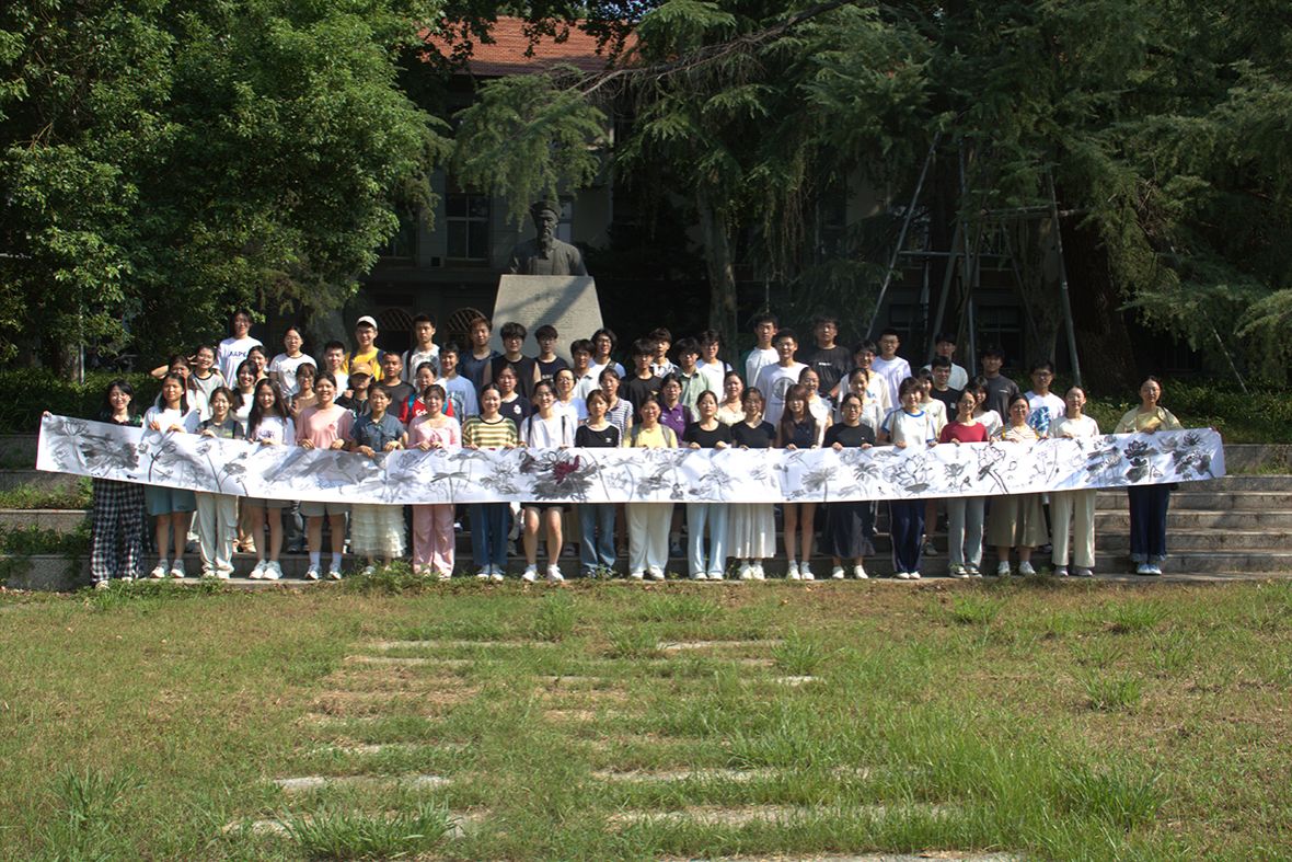 9月5日,“景园心识”活动上,风景园林系高翅、吴雪飞、章莉、杨叠川老师为同学们讲解了景园楼的建筑布局、教学科研条件及其与风景园林学科发展的联系。“景园心涂”环节中,同学们在景园楼前共同进行绘画创作,形态各异的水墨荷花连成一幅美丽画卷,展现出风景园林的艺术魅力。