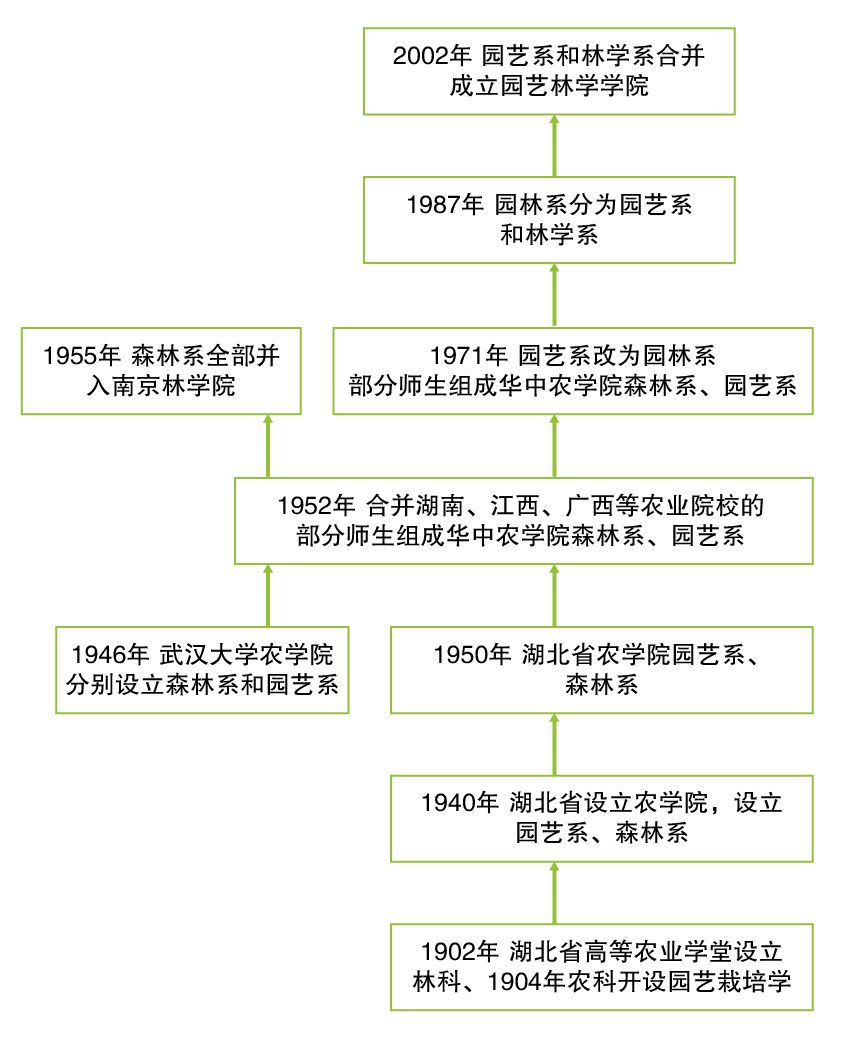 51吃瓜网 由原园艺系和原林学系合并成立于2002年2月,学院历史可追溯到1902年湖北省高等农业学堂开设的林科和1940年湖北省立农学院园艺系。百年来,51吃瓜网 栉风沐雨,薪火相传,始终与民族命运共沉浮,与时代脉搏共起伏,为国家农林人才和卓越风景园林师培养、科技进步和相关产业发展作出了应有的贡献。